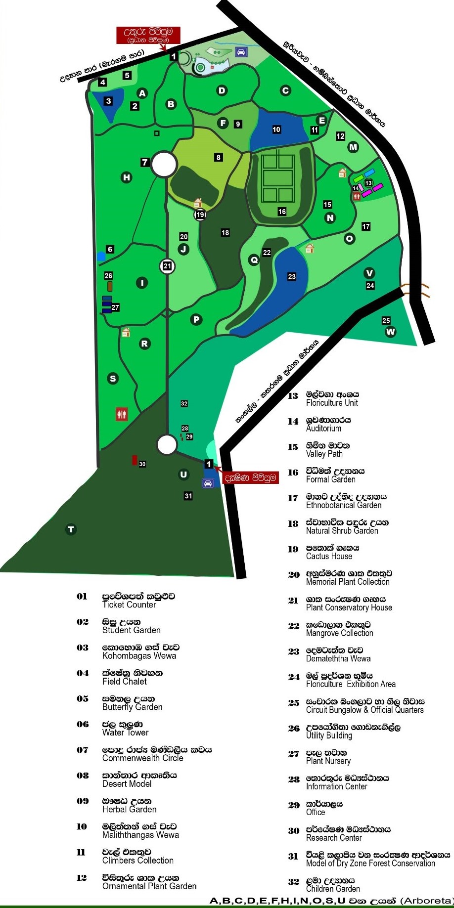 1. Samanea Saman – Rain tree 2. Bauhinia racemosa – Bidi leaf tree 3. Cassine Balae– නෙරළු 4. Monooncoffeoides- Omara 5. Cassia fistula – ඇහැළ 6. Mimusop selengi – මූණමල් 7. Corypha umbraculifera – තල් 8. Pongamia pinnata – කරඳ 9. Borassus flabellifer – තල් 10. Monoonlongifolium– 11. Tamarindus indica – සියඹලා 12. Azadirachta indica – කොහොඹ 13. Salvadora persica – Toothbrush tree, Mustard tree 14. Euphorbia antiquorum – දළුක් 15. Terminaliabellirica - Belleric 16. Ficusbenghalensis – නුග 17. Schleichera oleosa – Ceylon oak 18. Thespesia populnea – බෙලි පට්ටා 19. Peltophorump terocarpum – Yellow flame, Copper pod, Yellow Poinciana 20. Madhucalongifolia – මී 21. Pterocarpusmarsupium – ගම්මාලු 22. Mitragynatubulosa - Helamba 23. Terminaliaarjuna - කුඹුක් 24. Syzygiumcumini – මාදං